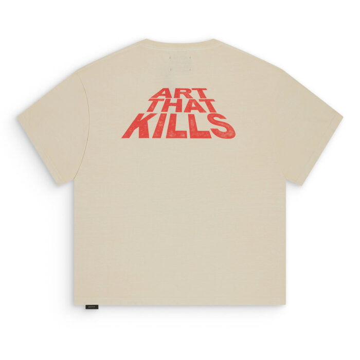 Crafted from ultra-soft, premium cotton, the Art That Kills T-Shirt features a relaxed, unisex fit that drapes just right. The standout front graphic makes it impossible to ignore, while the back showcases subtle branding details that tie the look together.